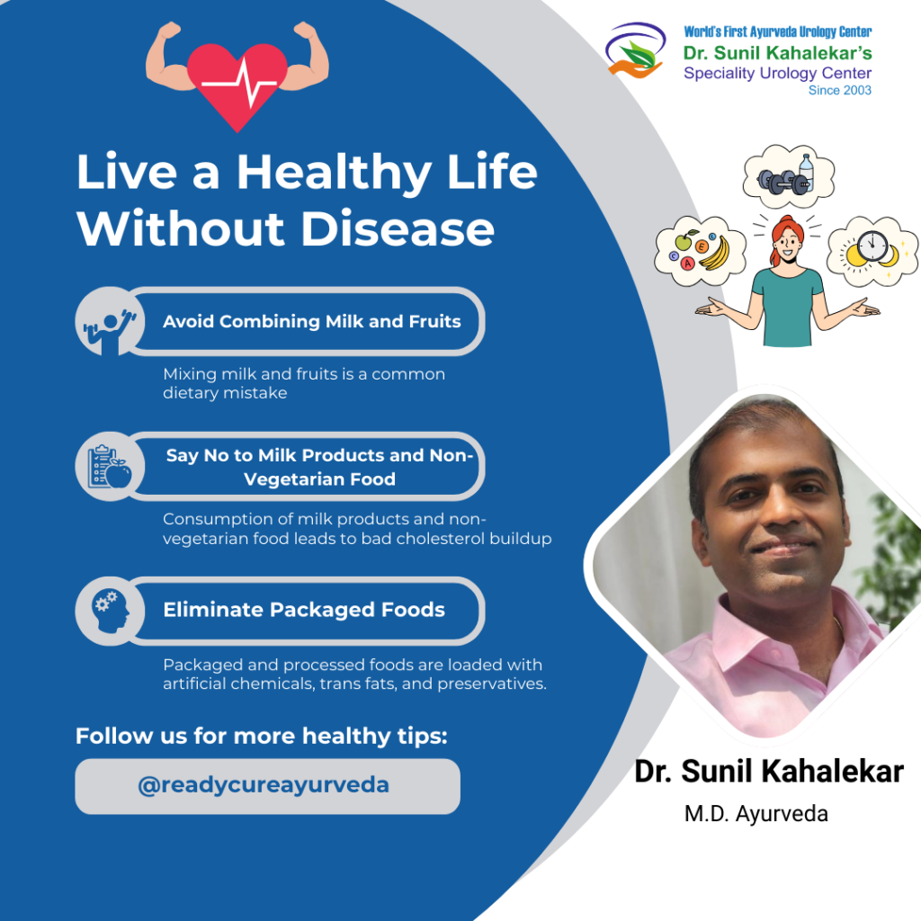 In today’s fast-paced world, staying disease-free and living a long, healthy life may seem challenging — but it’s absolutely achievable through simple lifestyle changes. At Kahalekar Urology Care, we believe that food is the most powerful medicine. Following a natural, sustainable diet and daily routine can help prevent most modern diseases, including diabetes, heart problems, and autoimmune disorders.